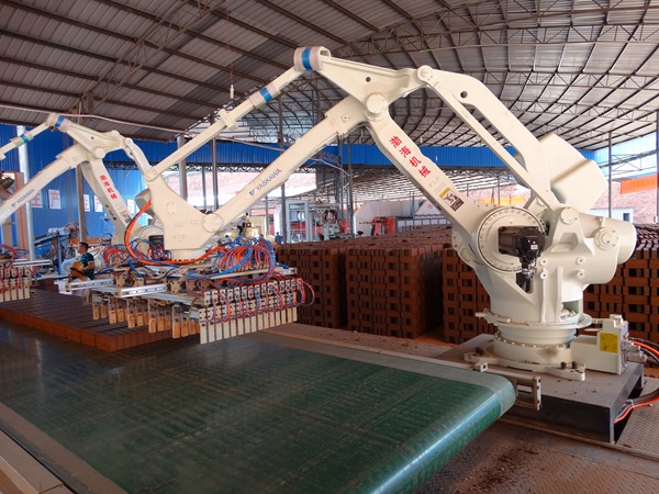 工業(yè)機器人自動切碼翻系統(tǒng),可根據(jù)不同的碼放形式及磚型靈活設計夾具,該系統(tǒng)基于AC伺服的電氣驅(qū)動,工作過程由PLC自動控制。工業(yè)機器人自動切碼翻系統(tǒng)打造磚瓦人工智能化生產(chǎn)。是磚機制造商發(fā)展的必然趨勢。在新形式下,渤海機械將機器人碼坯集成系統(tǒng)和硬塑擠出成型技術運用于磚瓦行業(yè),實現(xiàn)智能化生產(chǎn),為您節(jié)省大量的人力資源,提高生產(chǎn)產(chǎn)量和經(jīng)濟效益。